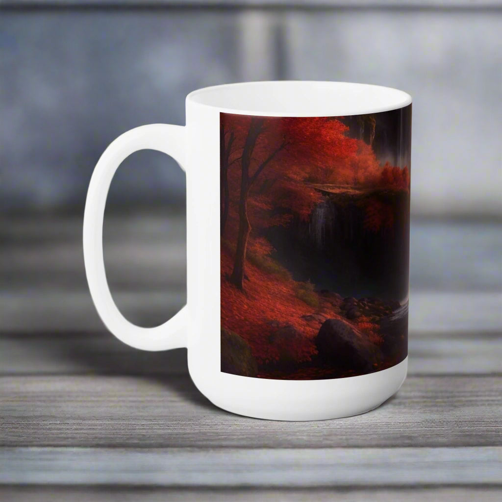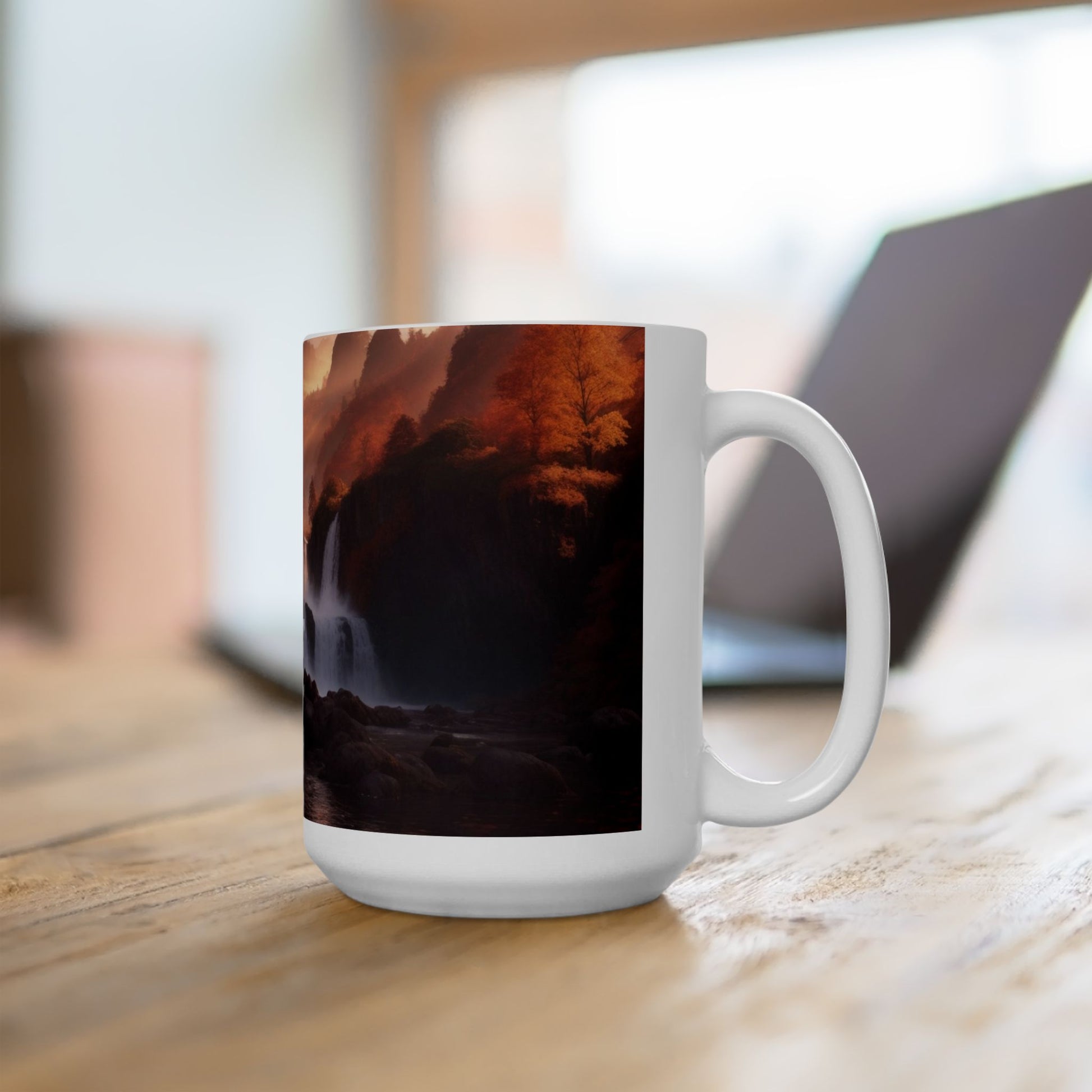 A lovely waterfall design with a brilliant sunrise adorns this ceramic coffee mug, adding a touch of elegance to your morning routine. The vibrant colors and glossy finish make it a perfect choice those who appreciate intricate designs. Ideal for enjoying a hot beverage while relaxing or starting your day off right. Perfect gift for nature enthusiasts, birthdays, holidays, and special occasions.