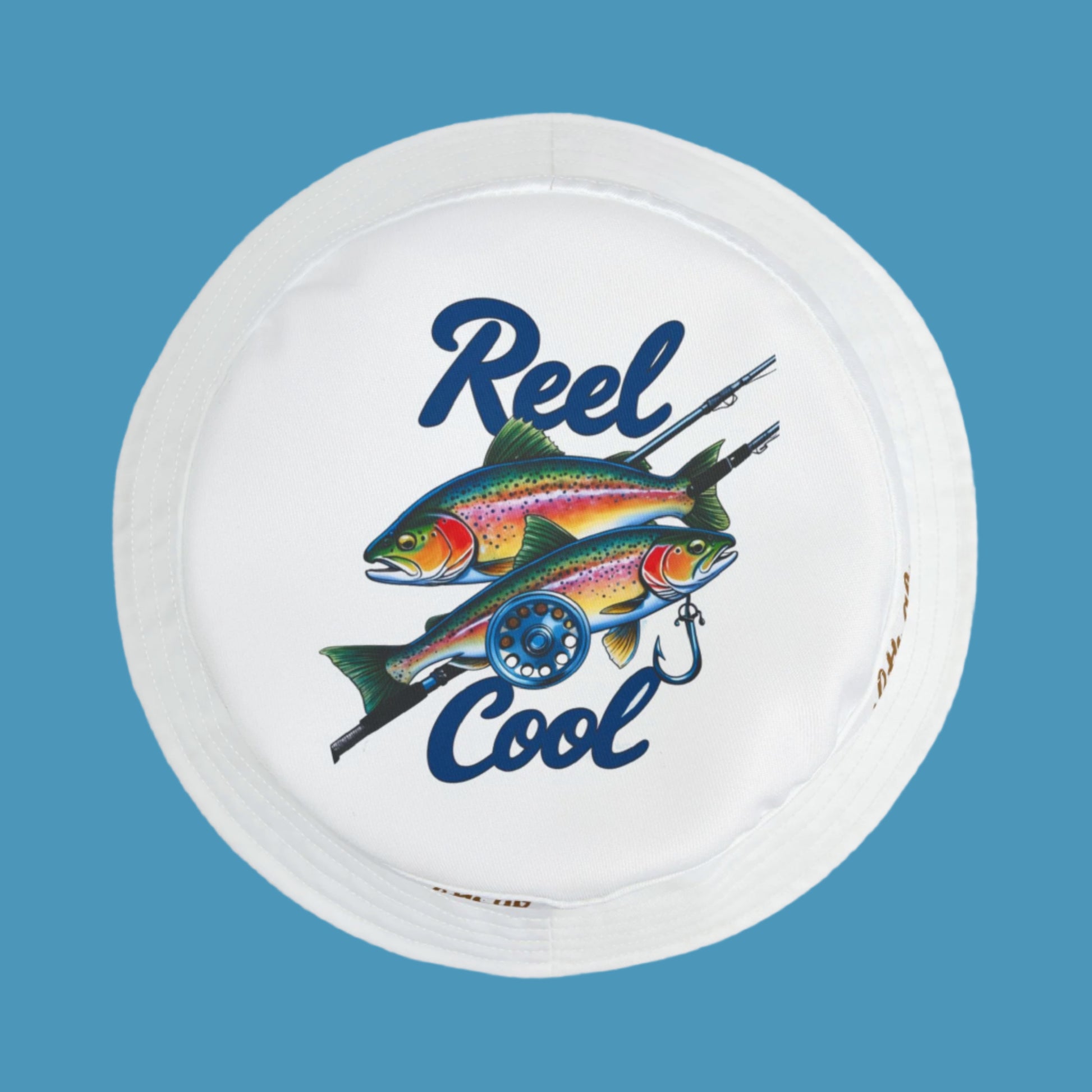 A fishing hat that says 'lets go fishing', perfect for outdoor enthusiasts and those who enjoy spending time by the water. This bucket hat is a great accessory for protecting yourself from the sun while enjoying a fishing trip or attending a festival. It is made of strong and durable 100% polyester fabric, available in two sizes.