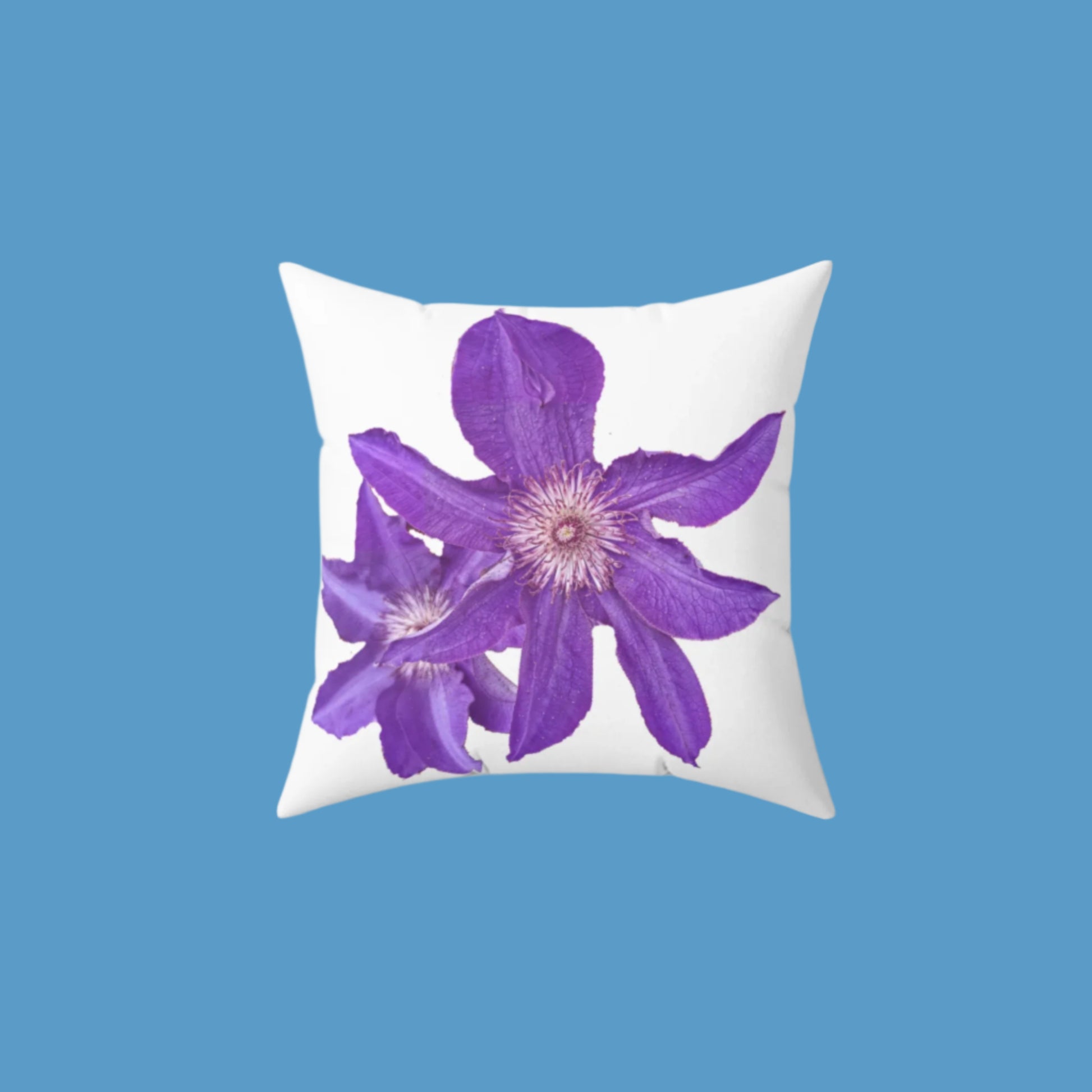 This purple clematis pattern pillow brings a touch of elegance and nature-inspired design to your home decor. Perfect for those who appreciate floral motifs and want to add a pop of color to their living space. Ideal for springtime, Mother's Day, or as a birthday gift for garden lovers.
