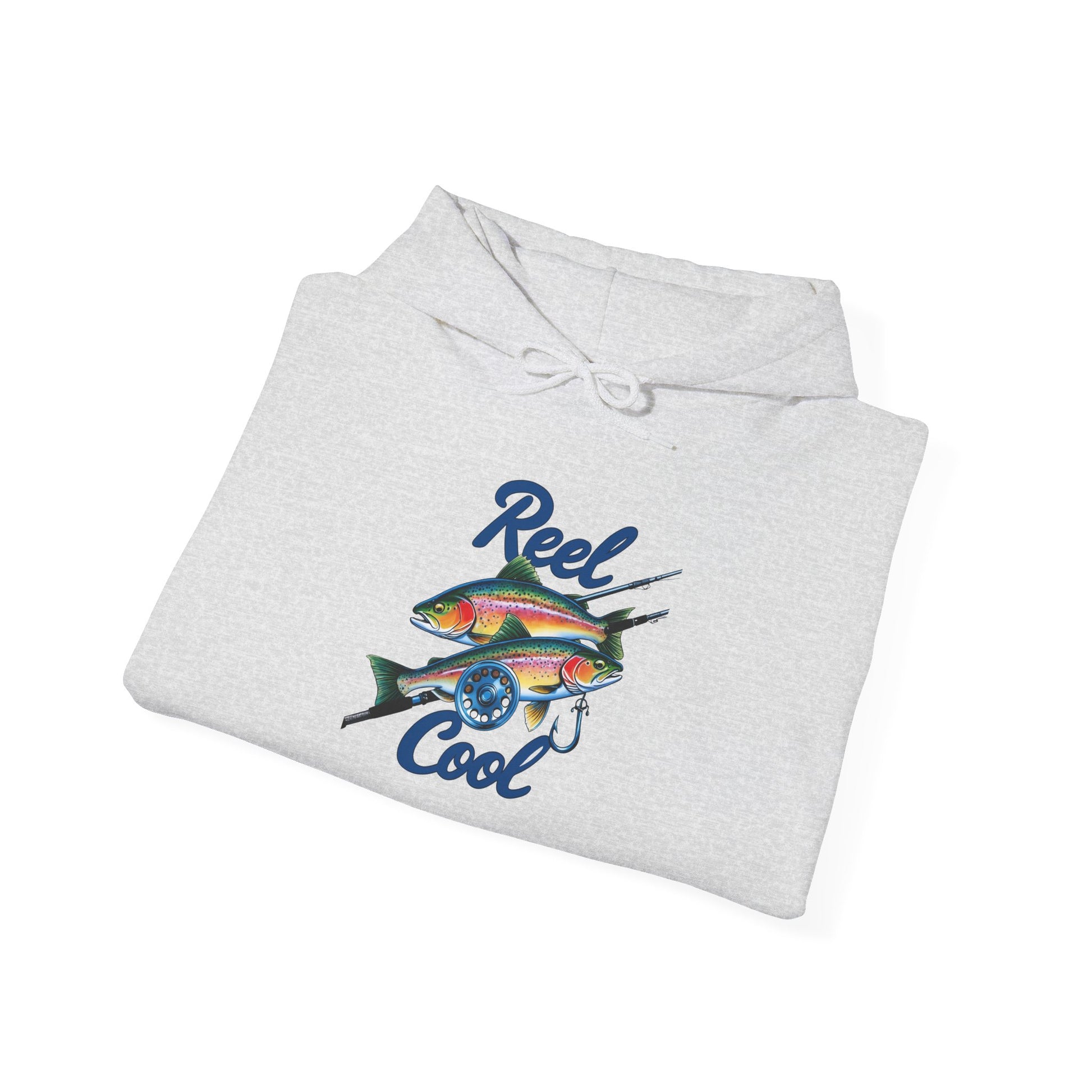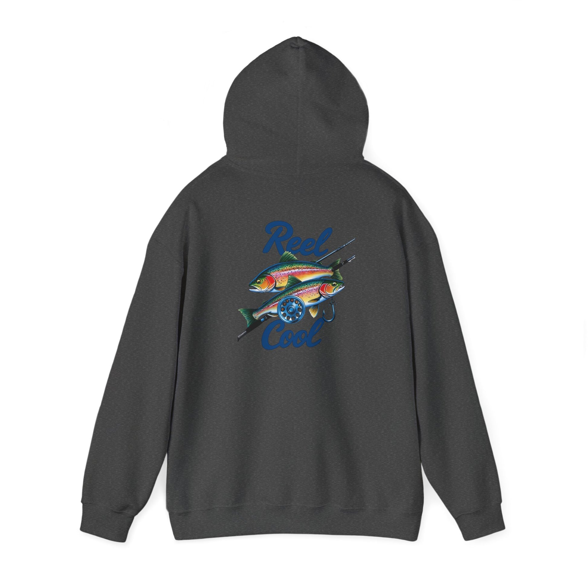 REEL COOL Hoodie heavy blend hooded sweatshirt is relaxation itself. Made with a thick blend of cotton and polyester, it feels plush, soft and warm, a perfect choice for any cold day. In the front, the spacious kangaroo pocket adds daily practicality while the hood's drawstring is the same color as the base sweater for extra style points.