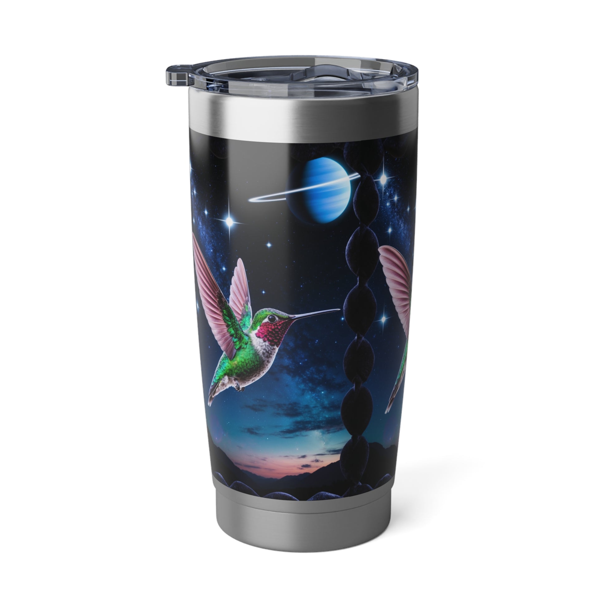 This tumbler features a beautiful hummingbird design against a space background, creating a whimsical and peaceful vibe. Perfect for on-the-go use, this tumbler fits easily in car cup holders and keeps drinks at the perfect temperature for hours. Ideal for nature lovers and those who enjoy stargazing, this tumbler is a great gift for birthdays, holidays, or any special occasion.